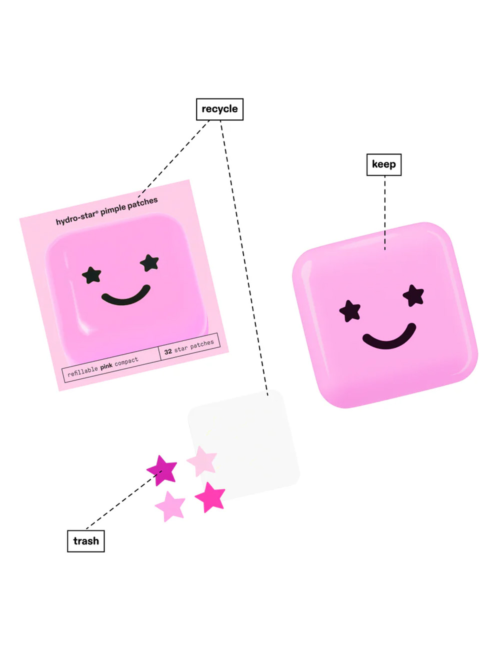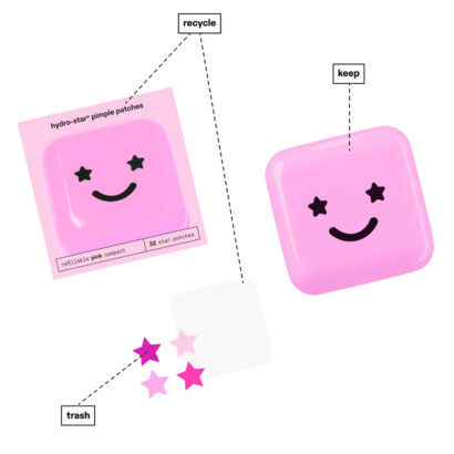 pink star is back forever with the sweetest, refillable pink compact! inside big pink you’ll find a pack of 32 hydro-star pimple patches in four pink shades: jelly bean, bubblegum, cotton candy, and fruit snack.